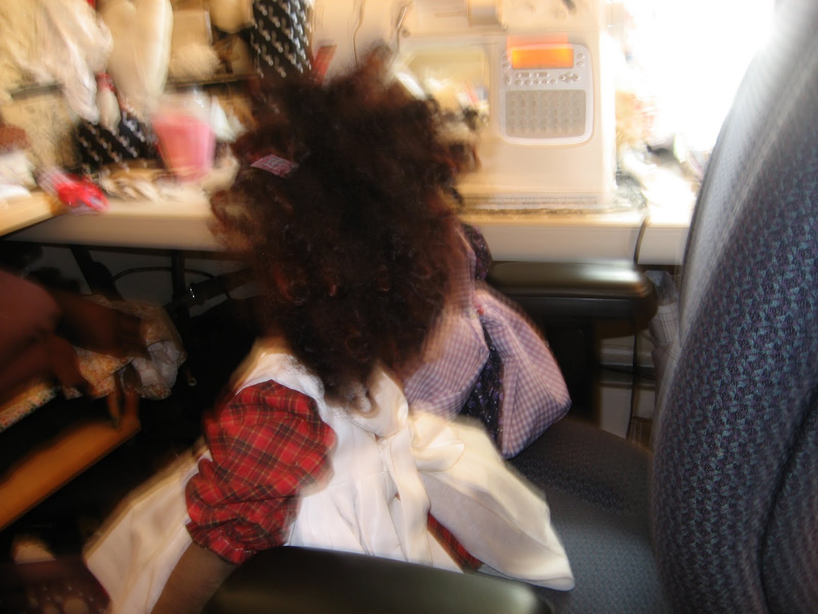 Oh I finally finished the curtains for my room and I brought a storage bench to use. It works out great its just the right height for sewing and it holds my bolts of fabric that I was storing in a old fiber fill box. Still a few more things to do in here and I am still not wanting to do anything with the floor lol. This room is so small for all I have to do in here. Okay I gotten off the subject lol. This is the second time I have given away a doll, my first doll went to Char over at The Pickled Pepper Patch http://charsethman.blogspot.com/2009/01/my-prize-arrived.html As you can see my dolls have changed a lot since that time.